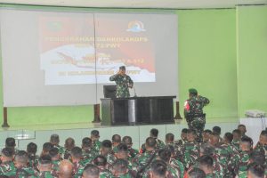 Abepura – Komandan Korem (Danrem) 172/PWY selaku Komandan Komando Pelaksana Operasi (Dankolakops) memberikan pembekalan kepada tiga Batalyon Satgas Pamtas RI-PNG...