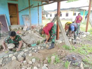 Yetti – Satgas Pamtas RI-PNG Yonif 131/Brs bersama dengan masyarakat bergotong royong membangun Gereja di Kp. Yetti diatri Araso Timur...