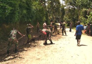 Karubaga~Babinsa Koramil 2703-08/Karubaga,Dpp Serda Yuki Kogoya bersama masyarakat binaan sedang melaksanakan kegiatan membantu pembersihan selokan guna mencegah tersumbatnya selokan di...