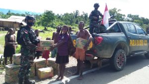 Yetti - Mengawali kegiatan Personil Satgas Yonif 131/BRS Pos Yetti melaksanakan kunjungan ke Kampung Yeti sambil membagikan baju kaos bergambar...