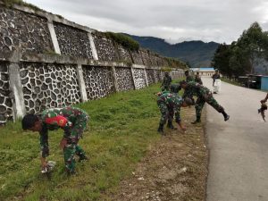 Tiom ~ Babinsa koramil 1702-04/Tiom,Dpp Letda Inf Rudi Hisage bersama anggota melaksanakan apel pagi,dilanjutkan dengan pembersihan pangkalan,Distrik Tiom,jum'at(19/03/2021). " Kebersihan...