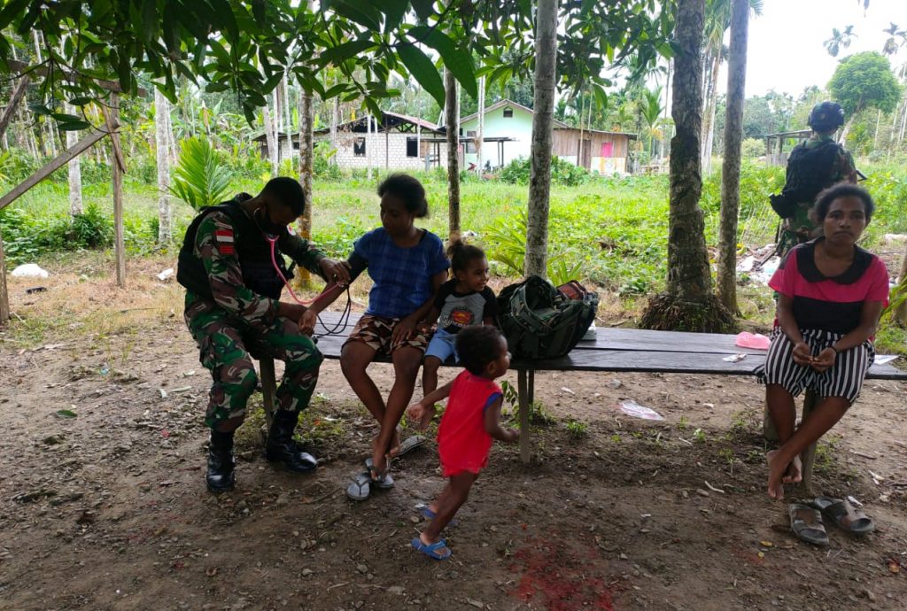 “kegiatan ini merupakan kegiatan yang dilaksanakan secara rutin dan berkala oleh setiap Pos Satgas, pelayanan kesehatan yang diberikan merupakan pemeriksaan tensi dan pemberian obat-obatan sesuai dengan kebutuhan dari pasien yang ada”, kata Danki.
