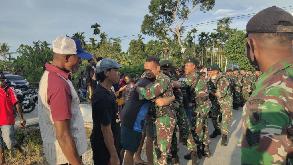 Para prajurit Satgas Yonif Raider 100/PS berjalan perlahan diiringi musik perpisahan yang terdengar dari pengeras suara. Tanpa ada yang memerintahkan, puluhan warga Kampung Wonorejo Pir IV atas lokasi pemukiman yang terdekat dengan Pos Kotis Satgas Yonif Raider 100/PS ikut mengiringi dan mengantar para prajurit TNI yang telah bertugas selama ± 8 bulan menuju kendaraan. Turut dihadiri oleh Kepala Kampung Bapak Yunus Kailem, Babinsa Bapak Aksan Hukom dan beberapa tokoh adat, agama dan warga lainnya.