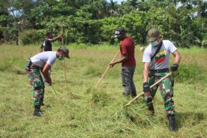 Jaya Pura. Prajurit TNI Satgas Pamtas RI-PNG Yonif 131/Brs bekerjasama dengan masyarakat sekitar Koya tengah menggelar Karya Bhakti membersihkan Gereja...