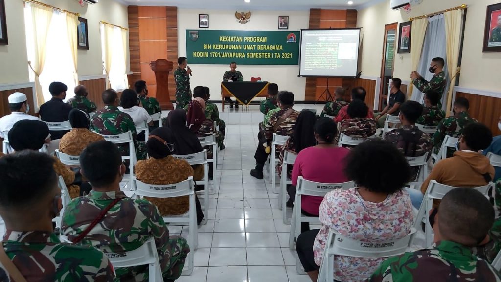 Sejalan dengan hal itu serta untuk mendukung progaram TNI-AD, Kodim 1701/Jayapura melaksanakan kegiatan pembinaan kerukunan umat beragama dalam kehidupan berbangsa dan bernegara bertempat Aula Kodim Jayapura,Jumat (16/04/2021).