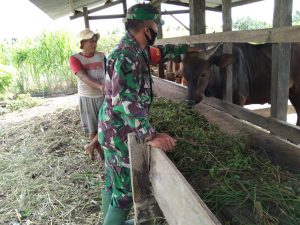 Keerom - Babinsa Koramil-23/Skanto Serda Apriyanto melaksanakan komsos dan Pendampingan Program Ketahanan Pangan terhadap Bapak Juro (48 Thn) selaku peternak...