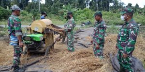 Sarmi (24/04/2021) Danramil 1712-06/Bonggo (Kapten Cba Dominggus Suitella, S.E. Kodim 1712/Sarmi beserta 8 anggota Babinsa Koramil melaksanakan kegiatan panen padi...