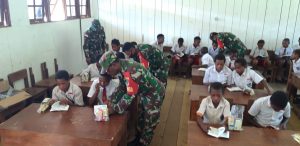 Keerom - Demi terciptanya generasi penerus bangsa yang berkualitas, Satgas Pamtas RI-PNG Yonif Mekanis 512/QY Pos Kalipay memberikan bimbingan belajar...