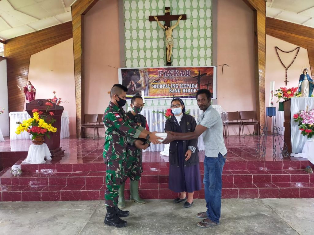 Arius Wabiager mengucapkan terima kasih kepada anggota Pos Workwana yang diwakilkan oleh Wadanpos Sertu Toddy dan Pratu Michael Salman “saya mewakili jemaat gereja Santo Yakobus mengucapkan terima kasih kepada anggota Pos yang telah membagikan Al-kitab kepada kami” ucapnya.