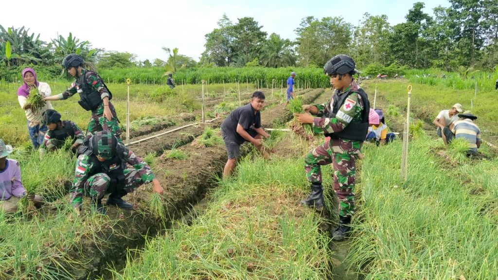 “Di Kampung Naramben hampir 80% warganya bermata pencaharian sebagai petani, tidak hanya bawang merah saja akan tetapi juga ada cabai, terong dan jenis tanaman sayur lainya. Bulan puasa tidak menghalangi semangat anggota kami dari Pos Arso XIII untuk membantu masyarakat memanem bawang merah tersebut” tutur Mayor Sarasin.