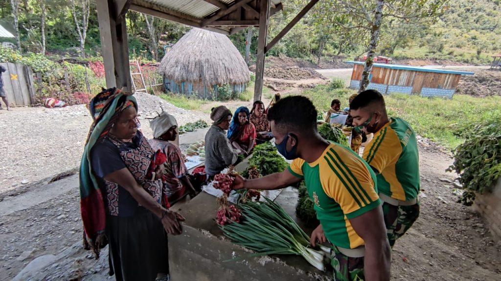 “Anggota Pos Bolakme sangat rajin belanja sayur dan buah di tempat saya bahkan bisa di bilang sudah jadi langganan, dan baru kali ini ada pos satgas yang sering belanja di pasar.” ujar Mama Meitina Tabuni (49).