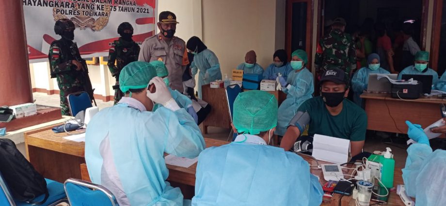 ”Kegiatan tersebut dilakukan untuk membantu percepatan program vaksinasi,” ujar Waka Polres Tolikara Kompol Yosep Goran Geleuk. Tak lupa Kapolres capkan terima kasih atas kehadiran Satgas Pamrahwan TNI dari Yonif RK 751/VJS dalam rangka mensukseskan kegiatan Vaksinasi Masal pada HUT Bhayangkara ke-75 tahun 2021.