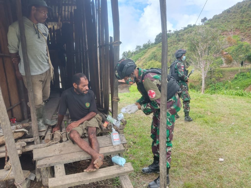 Keerom – Dalam rangka memperingati Hari Lahir Pancasila pada tahun 2021, Satgas Pamtas Yonif 403/Wirasada Pratista bekerjasama dengan aparatur kampung mengadakan kegiatan bakti sosial berupa pelayanan kesehatan gratis kepada warga di Kampung Opbanal, Distrik Kiwirok, Kabupaten Pegunungan Bintang, Papua.
