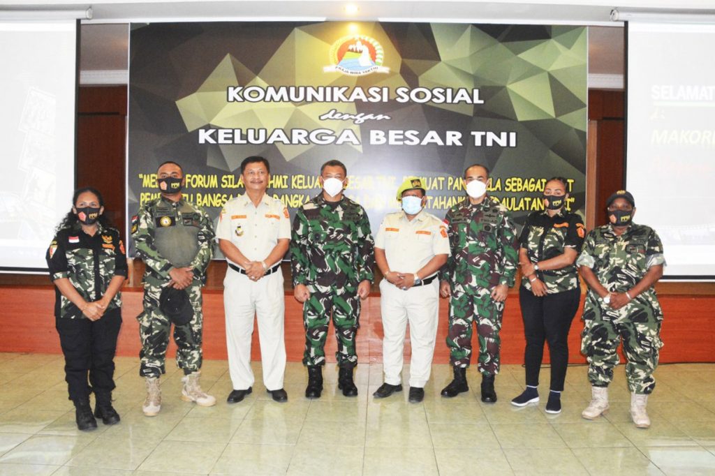 Jayapura – Korem 172/PWY menggelar komunikasi Sosial (Komsos) dengan Keluarga Besar TNI dari FKPPI, PPM dan Hipakad bertempat di Aula Makorem, Abepura, Kota Jayapura, Selasa (22/6). Dengan mengambil tema “Perkuat Pancasila Sebagai Alat Pemersatu Bangsa dalam Rangka Menjaga dan Mempertahankan Kedaulatan NKRI”.