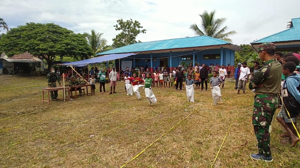 “Melalui kegiatan ini dan atas kehadiran bapak-bapak TNI Pos Bompay Yonif 403/WP ditengah-tengah masyarakat selain membuat anak-anak semakin antusias mengikuti perlombaan yang diadakan kami juga sangat senang serta berharap kedepan antara TNI dengan Masyarakat dapat semakin sinergis dan semakin harmonis,” ujar Daniel.