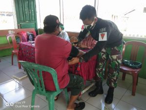 Keerom - Anggota kesehatan dari pos Kout KM 31 Satgas Pamtas RI-PNG Yonif 131/Brs, membantu Puskesmas Arso 8 dalam rangka...
