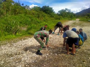 Oksibil – Dalam rangka meningkatkan kenyamanan dan keamanan pengguna jalan, Poskoki Oksibil Satgas Pamtas Yonif 403/Wirasada Pratista ajak warga Kampung...