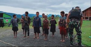 Oksibil – Dalam rangka menumbuh kembangkan jiwa solidaritas dan jiwa korsa sejak dini kepada anak-anak, Satgas Pamtas Yonif 403/Wirasada Pratista...