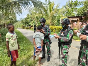 Keerom - Sebagai upaya mencegah penyebaran Virus Covid-19 di Ujung Timur Indonesia, anggota Pos Kalilapar Satgas Pamtas RI-PNG Yonif Mekanis...
