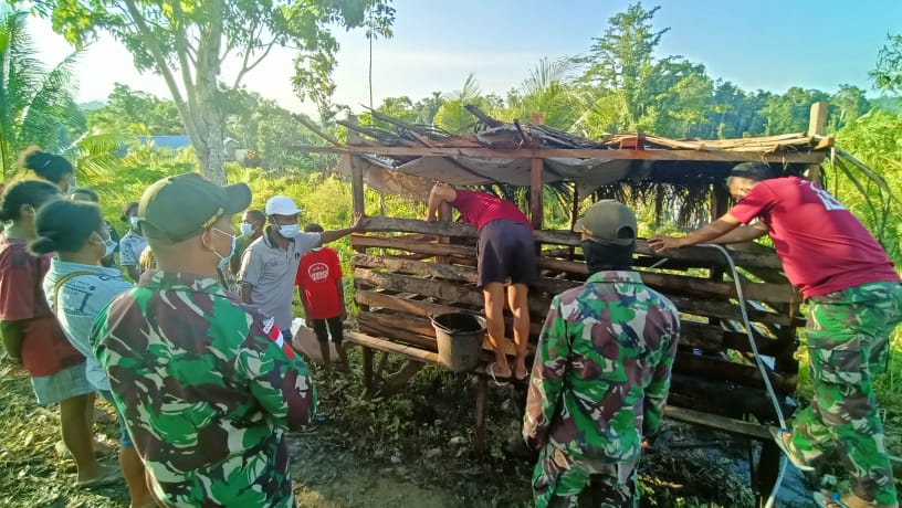 Keerom – Satgas Pamtas RI-PNG Yonif 131/Brs Pos Skamto memberikan penyuluhan cara beternak babi kepada warga Kp. Yowong Distrik Arso Barat Kab. Keerom Papua.