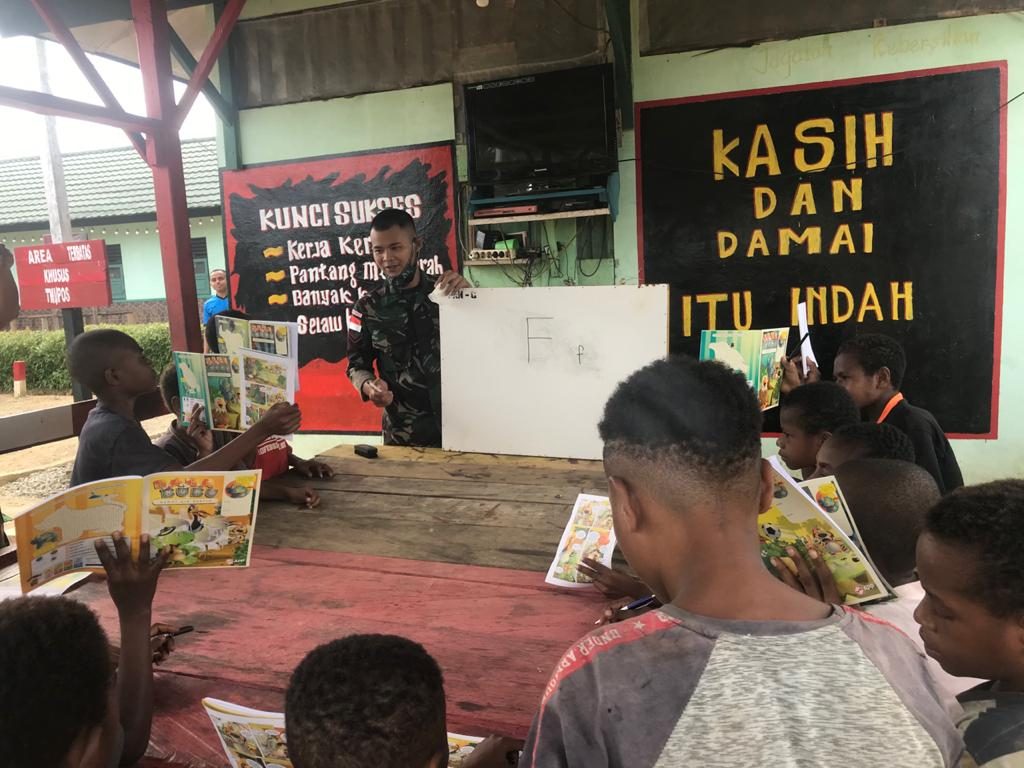 “Kami sangat senang dan berterima kasih kepada bapak Pos TNI, semenjak adanya kegiatan belajar tambahan dari Pos TNI anak-anak menjadi lebih rajin belajar baik di sekolah maupun pada saat dirumah” ucap Yustinus.