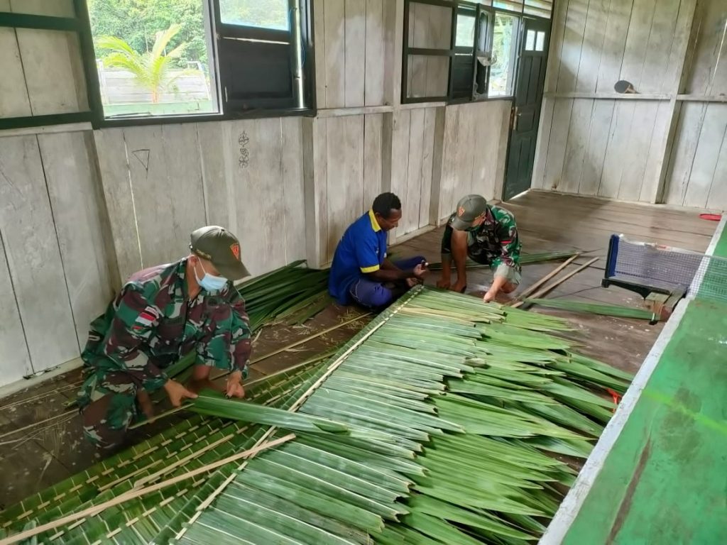 Keerom – Pohon Sagu yang banyak tumbuh di daerah Papua banyak memberikan manfaat bagi masyarakatnya. Selain bisa diolah menjadi bahan makanan, daunnya juga dapat dimanfaatkan menjadi atap rumah. Seperti yang dilakukan Satgas Pamtas RI-PNG Yonif 131/Brs yang melatihkan masyarakat membuat atap rumah di Pos Skofro baru kampung Kufu Distrik Arso Timur Kabupaten Keerom, Papua.
