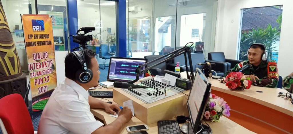 Keerom – Dalam rangka berbagi informasi dan dialog interaktif kepada para pendengar setia RRI Jayapura, Satgas Pamtas Yonif 403/Wirasada Pratista menyapa masyarakat melalui “Siaran TNI Menyapa” di Studio Radio Republik Indonesia (RRI) di jalan Tasangkapura, Jayapura, Papua, Senin, (14/06/2021)
