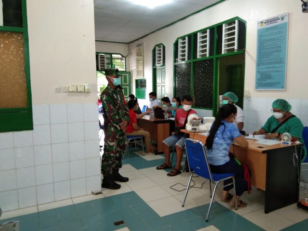 Abepura – Bertempat di RSUD Abepura Kelurahan Yobe Babinsa Koramil 1701-03/Abepura Sertu Agung Gumarang bersama Tim Posko PPKM Mikro Kelurahan Yobe membantu sukseskan pelaksanaan Vaksinasi, Rabu (30/06/2021).