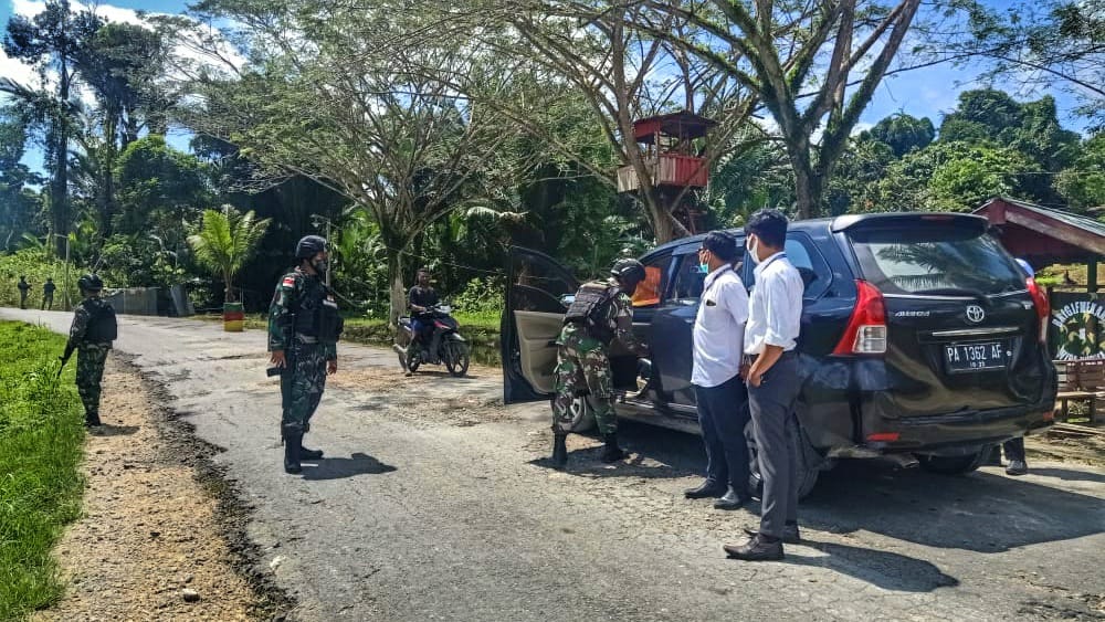 “Kami lakukan pemeriksaan terhadap seluruh pengguna jalan yang melintas, baik yang naik motor maupun naik mobil. Tidak hanya masyarakat biasa saja, kami juga melakukan pemeriksaan terhadap pekerja jasa expedisi pengiriman barang, guru dan ASN (Aparatur Sipil Negara) Pemda yang melintas” ungkap Serka Sandi.