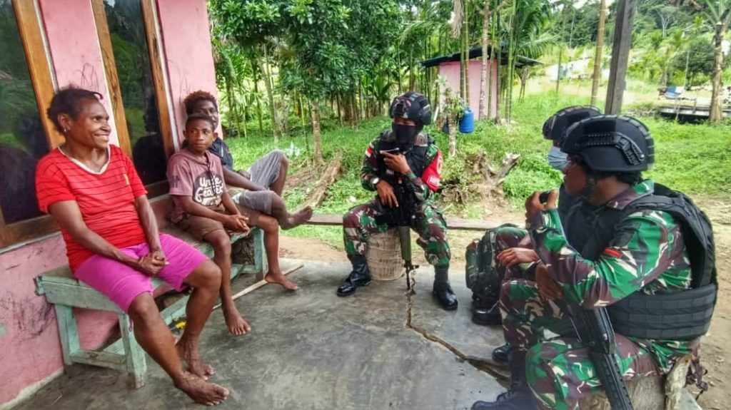 Keerom – Dalam upaya menjaga masayarakat binaan agar terhindar dari wabah penyakit yang muncul di musim penghujan, Pos Km 76 Satgas Pamtas RI-PNG Yonif Mekanis 512/QY melaksanakan anjangsana dan mengajak warga agar menjaga kebersihan lingkungan di Kampung Uskuar, Distrik Mannem, Kabupaten Keerom Papua. Senin (12/07/2021)