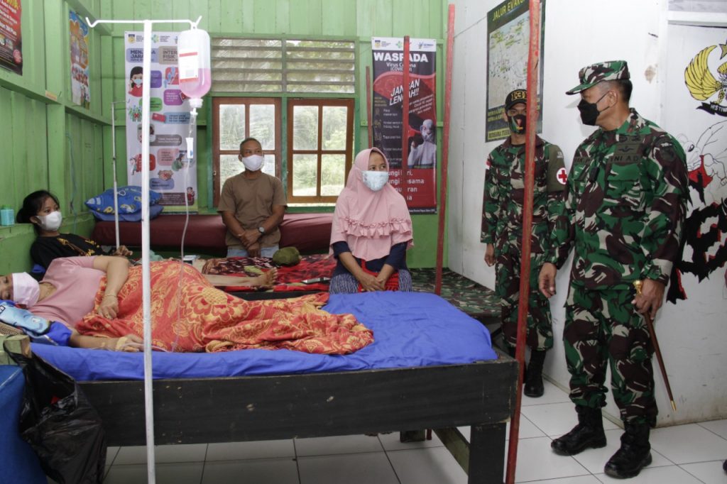 Jayapura – Danrem 172/PWY Brigjen TNI Izak Pangemanan selaku Komandan Kolakops meninjau Pos Pelayanan Kesehatan Sementara Satgas Pamtas RI-PNG Pos Kout Yonif 131/BRS KM 31 di kampung Arso 1, Kabupaten Keerom, Jum’at (9/7).