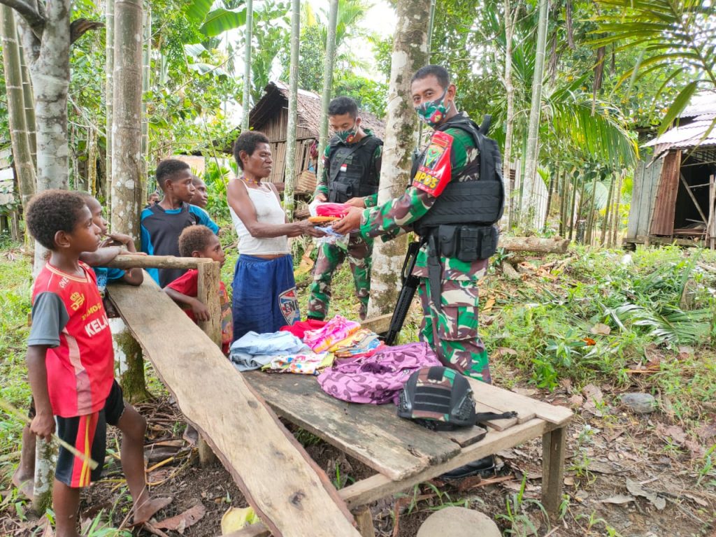 Oksibil – Salah satu bentuk kepedulian terhadap masyarakat di wilayah perbatasan, Pos Iwur Satgas Pamtas Yonif 403/Wirasada Pratista mendatangi rumah-rumah warga binaannya (anjangsana) dan melaksanakan komunikasi sosial (bertukar pikiran) dengan maksud mengajak masyarakat untuk meningkatkan rasa cintanya terhadap NKRI, dan di akhir komunikasi Satgas membagikan pakaian layak pakai kepada masyarakat di Kampung Kurumkin, Distrik Iwur, Kabupaten Pegunungan Bintang, Papua.