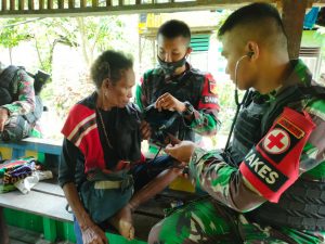 Keerom - Satgas Pamtas RI-PNG Yonif 711/Rks melaksanakan pelayanan pengobatan gratis kerumah-rumah di kelurahan Wembes, Distrik Arso Timur, Kab. Keerom...