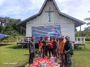 Keerom – Dalam menyambut hari Natal dan Tahun Baru tahun 2021, Pos Kotis Satgas Pamtas Yonif 126/KC bersama PT. Bio...