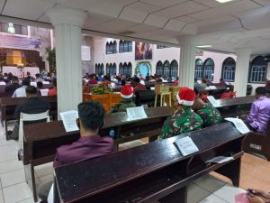 Walesi - Perayaan natal Datangnya Natal 2021 disambut dengan kegiatan ibadah oleh personil Satgas Yonif RK 751/VJS yang beragama Nasrani...