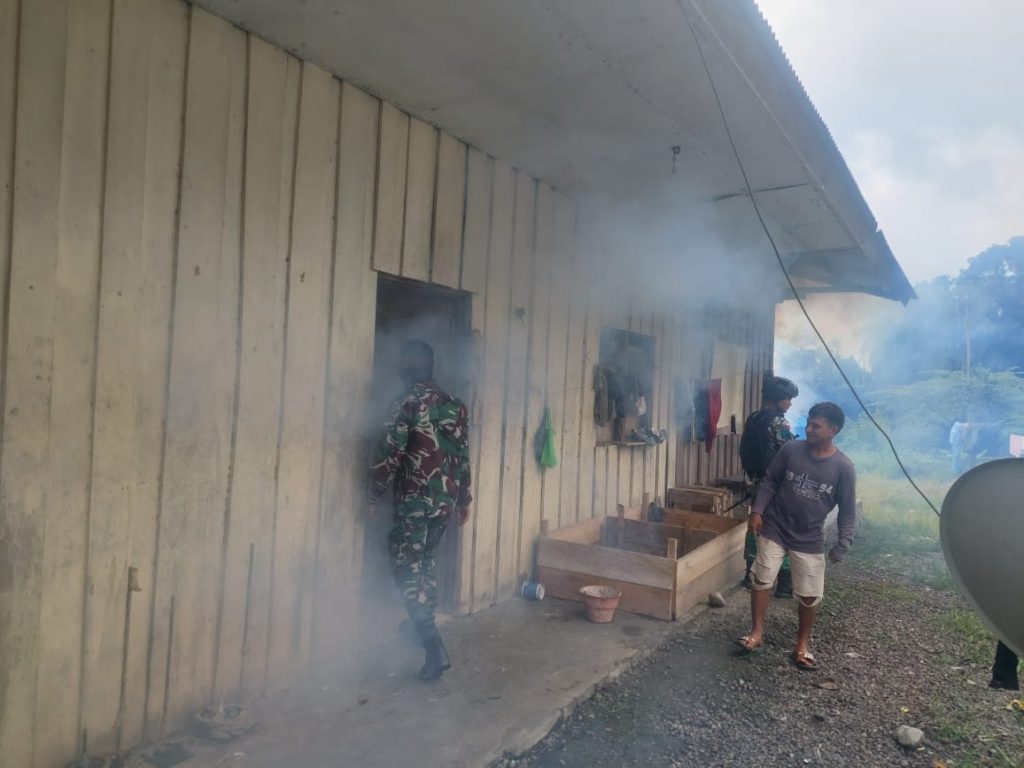 “Kegiatan fogging dan himbauan untuk menjaga kebersihan lingkungan ini merupakan upaya kami untuk mengurangi penyebaran penyakit yang disebabkan oleh nyamuk karena mayoritas wilayah Kabupaten Keerom tingkat kasus penyakit malaria cukup tinggi” Ucap Dansatgas