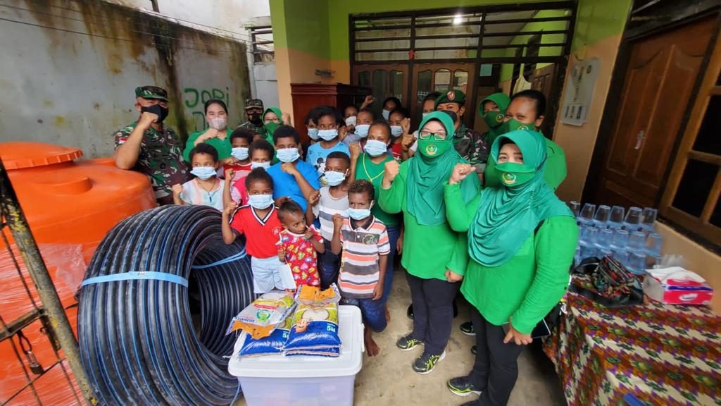 “Kehadiran kami mewakili Ibu Ketua Persit KCK Kodam XVII/Cenderawasih untuk bertemu dan melihat langsung kondisi adik-adik di Panti Asuhan Pembawa Terang. Selanjutnya kami salurkan beberapa perlengkapan yang menjadi kebutuhan dari Panti Asuhan Pembawa Terang seperti tandon penampung air, pipa air, beras, perlengkapan mandi dan bingkisan snack,” ujarnya.