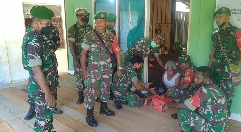 Babinsa Koramil 1701-/Demta Serma Suranto menuturkan, dirinya bersama sembilan anggota Babinsa lainnya mengunjungi salah satu rumah warga binaan Ibu Debora Karuway yang merupakan Ibu yang sudah lanjut usia dan tinggal sendiri dirumahnya.