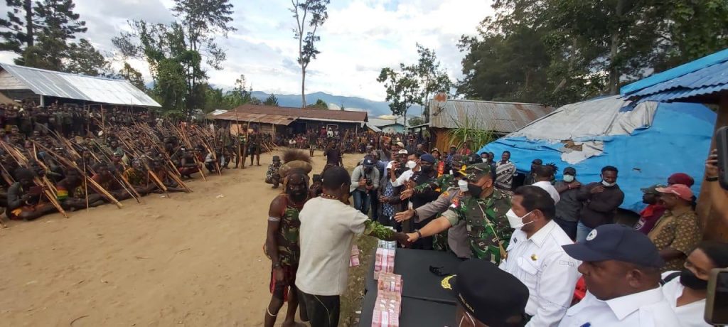 Wamena – TNI – Polri dari Kodim 1702/Jayawijaya, Batalyon Infanteri 756/WMS dan Polres Jayawijaya bersama Forkopimda Kab. Jayawijaya, Kab. Nduga dan Kab. Lanny Jaya menyelesaikan konflik yang sedang terjadi antara dua kelompok masyarakat dari suku Nduga dan suku Lanny Jaya.