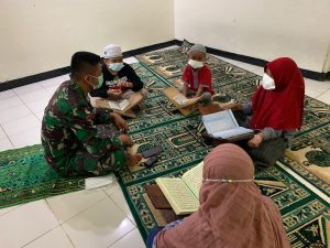 Skouw - Pos Kotis Satgas Yonif 711/Rks, dipimpin Patop Satgas Lettu Ctp Burhanudin Azis bersama anggota mengajarkan mengaji kepada anak-anak...