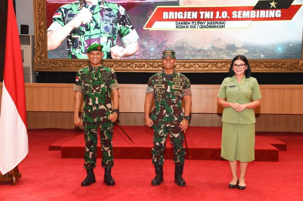 Jakarta – Komandan Korem 172/PWY saat ini JO Sembiring, sebelumnya masih berpangkat Kolonel telah resmi menyandang pangkat baru yaitu Brigadir Jenderal (Brigjen). Pangkat tersebut resmi disandangnya setelah melaksanakan laporan Korps Kenaikan Pangkat bersama 32 orang Perwira Tinggi lainnya kepada Panglima TNI Jenderal TNI Andika Perkasa, bertempat di Aula Gatot Subroto Mabes TNI, Cilangkap, Jakarta Pusat, Selasa (28/6).
