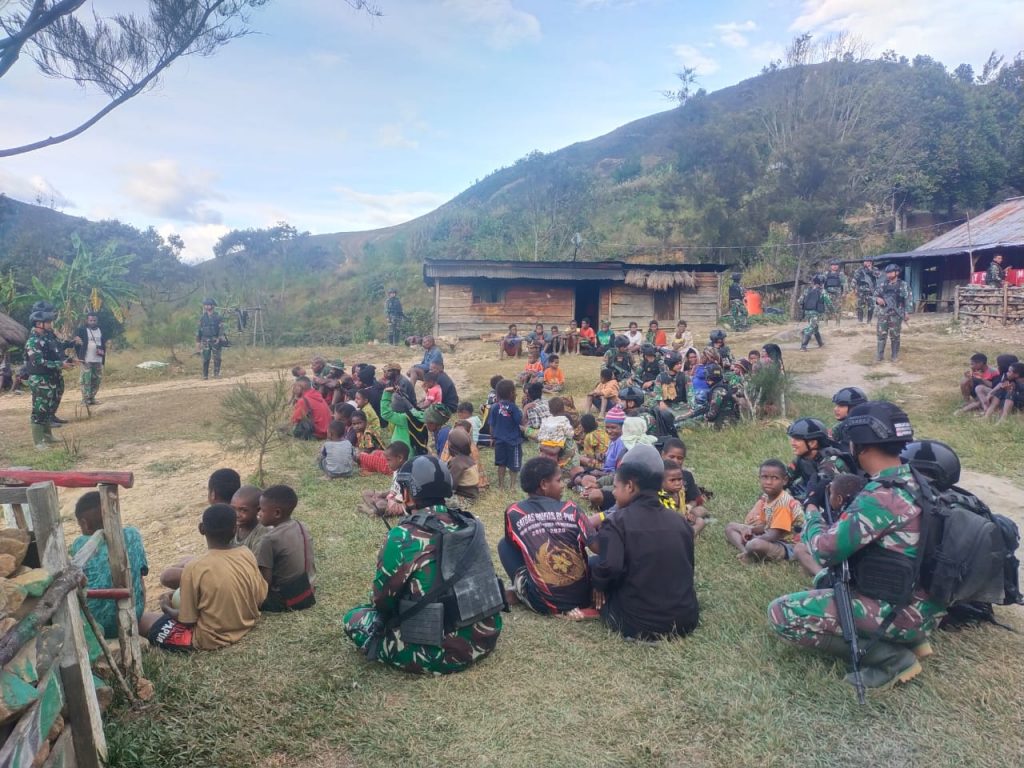 Dalam rangka melaksanakan tugas Satuan Organik Yonif Mekanis 203/AK di wilayah Lanny Jaya Papua, prajurit Yonif Mekanis 203/AK yang berada di pos Malagayneri melaksanakan kegiatan teritorial dengan memperkenalkan diri kepada masyarakat Kampung Lowanom, Kab. Lanny Jaya, Prov Papua, Selasa (13/7).