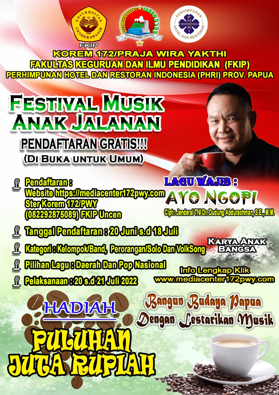 Korem 172/PWY bersama FKIP Universitas Cenderawasih dan PHRI Provinsi Papua menyelenggarakan “Festival Musik Anak Jalanan”.