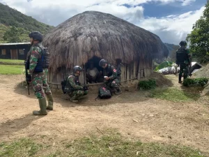 Satgas Yonif Mekanis 203/AK Pos Balingga melaksanakan pelayanan kesehatan secara door to door di desa Balingga Induk Distrik Balingga Kab.Lanny...