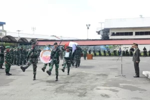 Sentani – Kepala Staf Korem (Kasrem) 172/PWY Kolonel Inf Bayu Sudarmanto selaku Wadankolakops bertindak sebagai Inspektur Upacara pada upacara pengantaran...