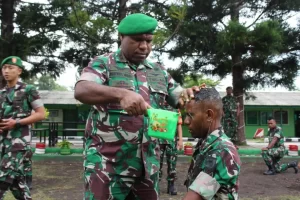 WAMENA - Komandan Kodim 1702/Jayawijaha Letkol Cpn Athenius Murip ,SH, MH. Memimpin upacara penerimaan warga baru Ba Otsus di lapangan...