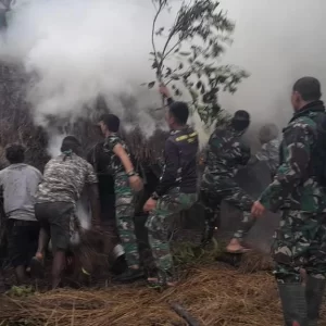 Satgas Satuan Organik Yonif Raider 321/GT memadamkan kebakaran honai warga di Distrik Napua, Kabupaten Nduga, Provinsi Papua, Hal ini disampaikan...