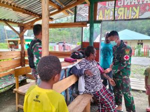 Mewujudkan kepedulian meningkatkan taraf kesehatan warga Papua Personel TNI Satuan Tugas Pengamanan Perbatasan (Satgas Pamtas) RI PNG Yonif 711/Rks di...