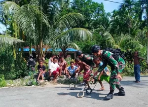 Terlihat wajah anak-anak nampak ceria begitu juga senyumnya saat bermain dengan anggota Satgas Pamtas RI-PNG Yonif 711Rks Brigif 22/OM Pos...