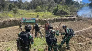 Satgas Yonif Mekanis 203/AK yang melaksanakan kegiatan penugasan di wilayah Papua membantu meningkatkan perekonomian masyarakat dengan membuka lahan untuk berkebun...